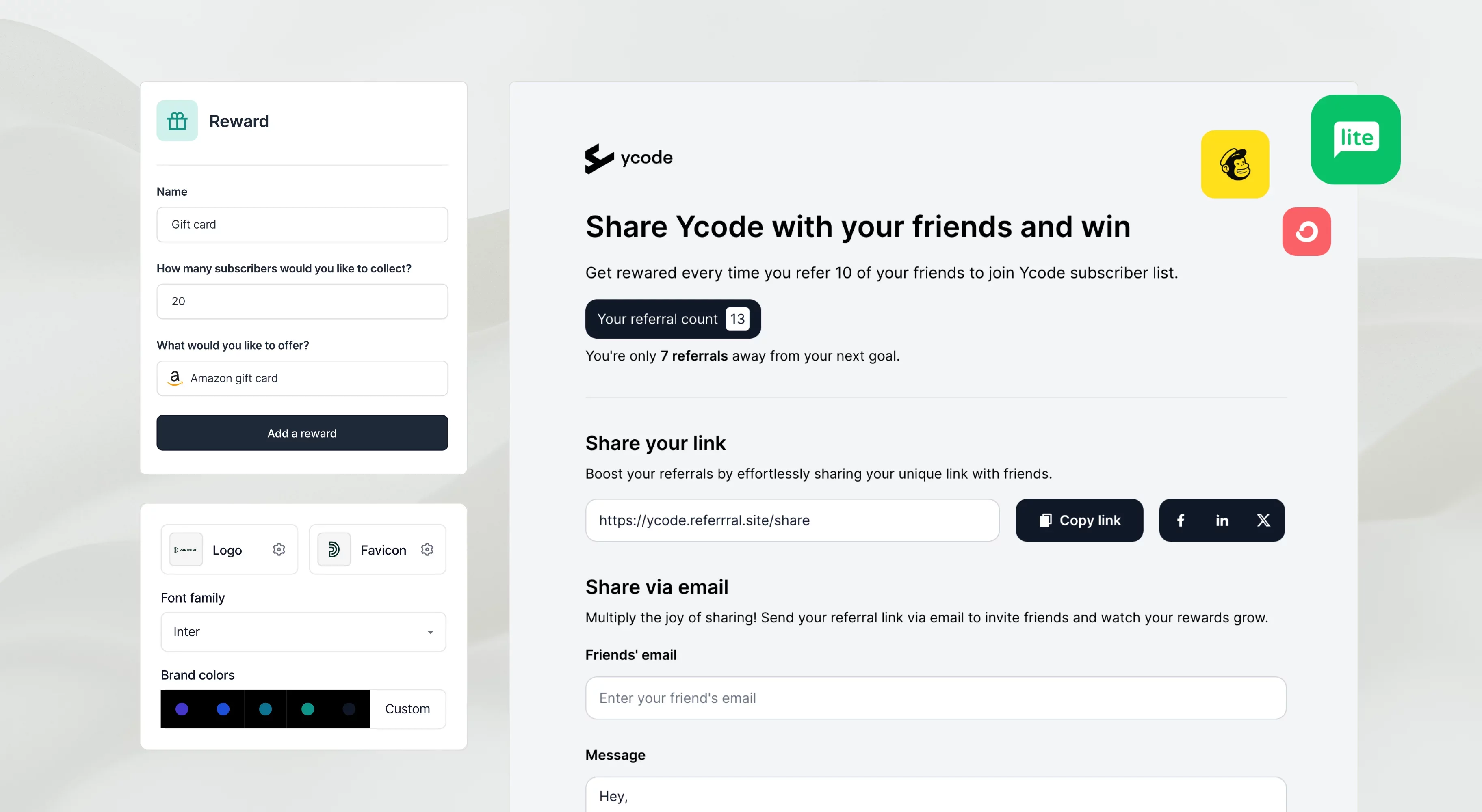 • reward subscribers with a Stripe discount code when they bring in 5 new subscribers.